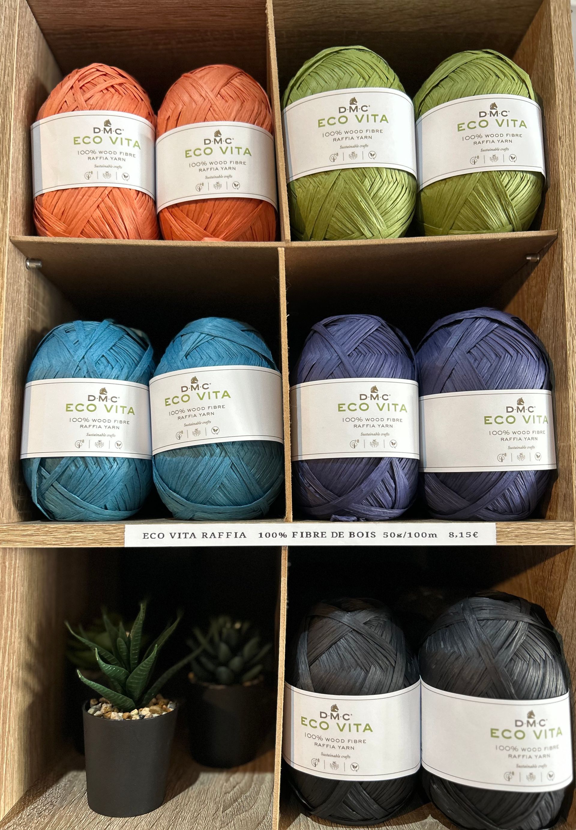 Plongez dans l’univers de la mercerie : laines douces et colorées, fils de qualité, aiguilles, crochets et accessoires essentiels, provenant de marques reconnues - Happywool, DMC et Janome.